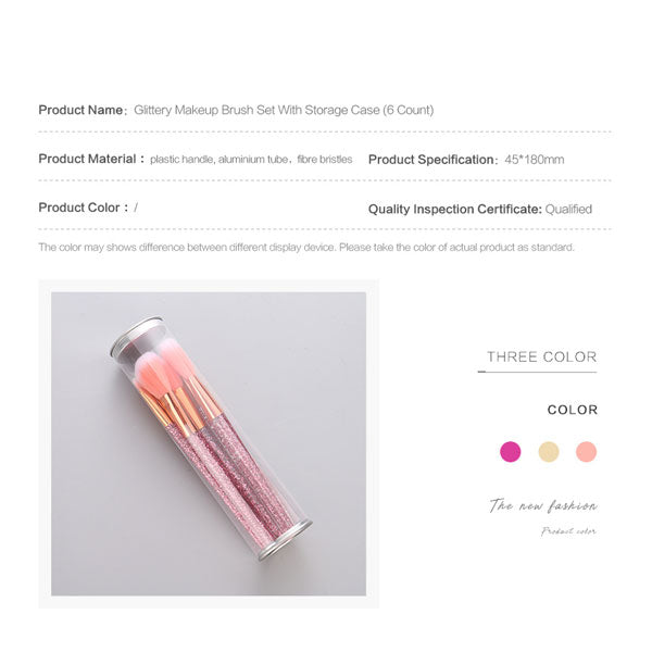Glittery Makeup Brush Set With Storage Case (6 Count)