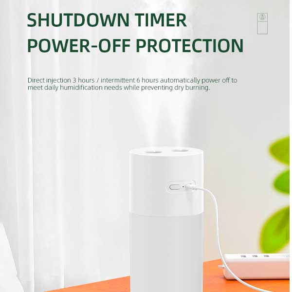 Direct injection 3 hour/ intermittent 6 hours automatically power off to meet daily humidification needs while preventing dry burning.