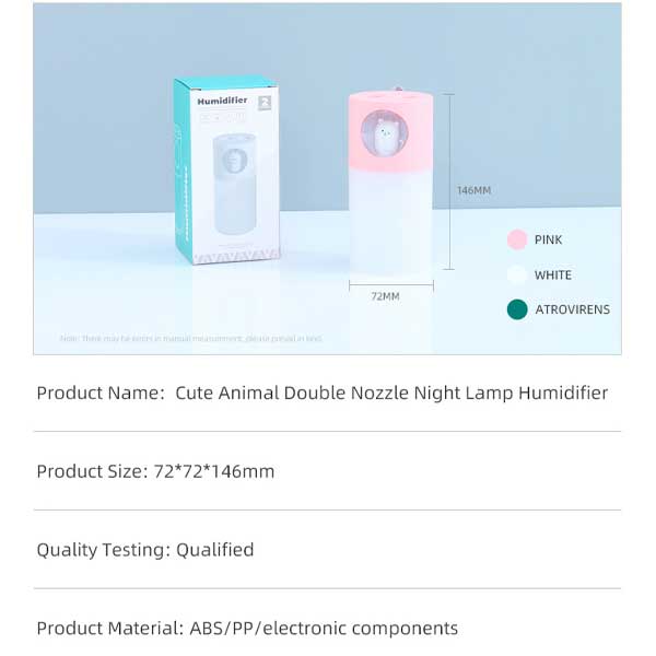 Cute animal double nozzle night lamp humidifier (DQ113)