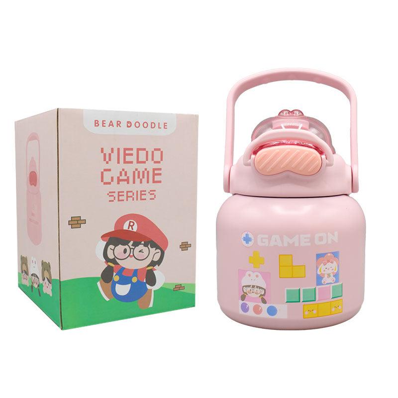 The Big Belly Thermos Cup is a large capacity stainless steel thermos cup with a capacity of 720 ml. It is made of food-grade stainless steel and is BPA-free, ensuring that your beverages are safe and healthy. The thermos has a double-wall vacuum insulation that keeps your beverages hot or cold for hours. It also has a leak-proof lid and a carrying handle, making it easy to take with you on the go. The thermos is available in two colors, pink and yellow.