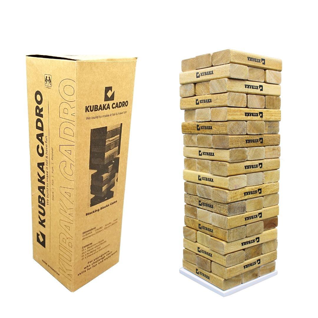 New Premium-Quality KUBAKA Cadro Stacking and Sorting Blocks for kids to Learn and Play with. This is an Environment-friendly Educational Toy safe and secure for kids. Stack->Fall-> Fun-> Repeat. Large Motor Skills and EYe-Hand Coordination. This is a Solid Wood Blocks like Jenga Blocks.