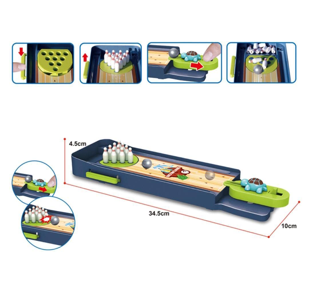 Introducing Toyzee Bowling, the perfect game for kids who love sports and enjoy a fun challenge! With this game, children can experience the excitement of bowling right in the comfort of their own homes.The game features a cute tortoise character as the bowling ball, adding an extra element of fun to the gameplay. Kids can take turns shooting the tortoise ball at a set of pins, trying to knock down as many as possible with each turn.The game is designed to be easy to set up and play, making it perfect for kids of all ages. It helps to develop hand-eye coordination, fine motor skills, and strategic thinking. Plus, it’s a great way to get kids moving and active while having a blast.The Toyzee Bowling set includes everything needed to get started, including a set of pins, a tortoise ball, and a bowling mat. It’s a perfect gift for birthdays, holidays, or any occasion that calls for a fun and engaging activity for kids. So why not bring the excitement of bowling into your home with Toyzee Bowling?