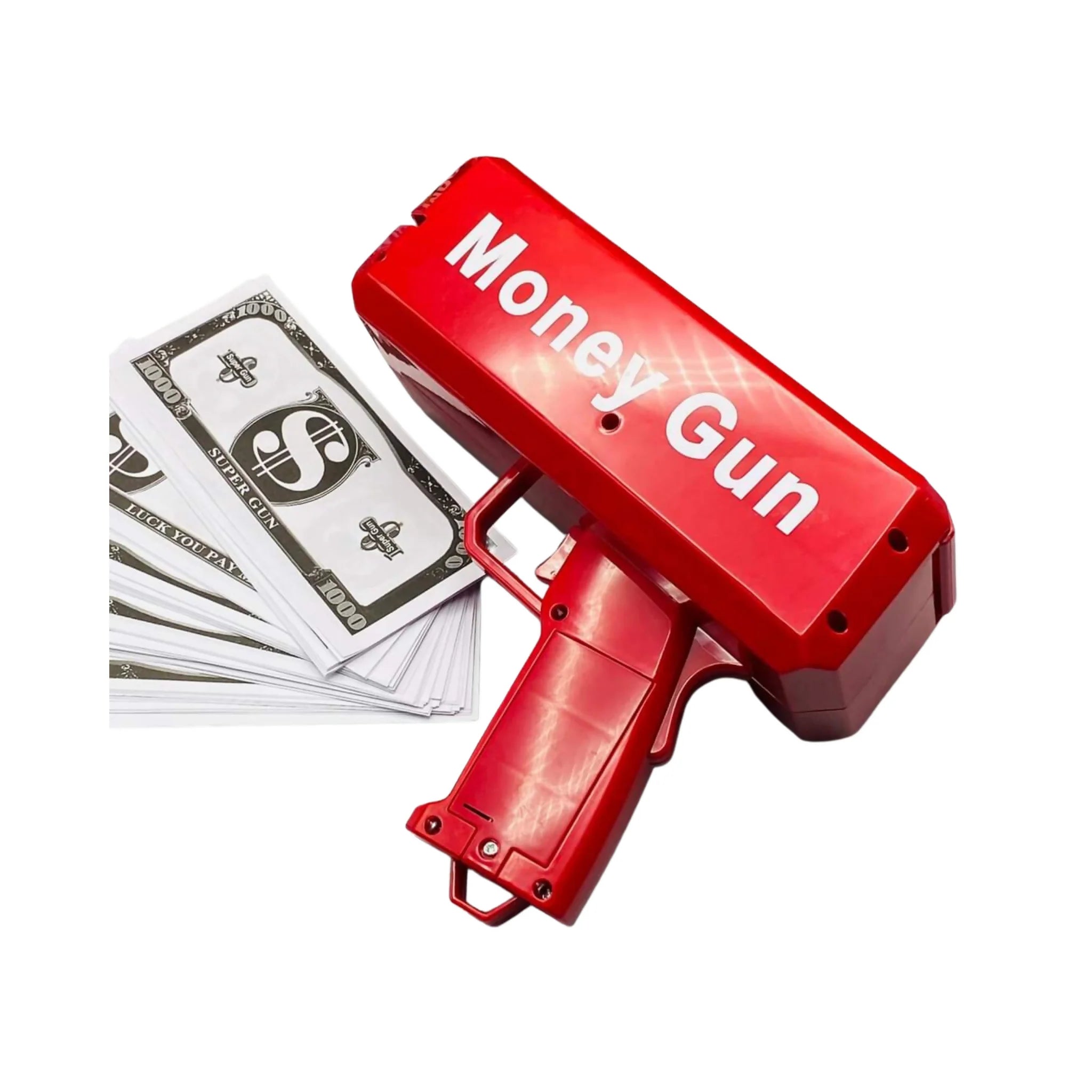 This amazing make it rain gadget that can feed up to 100+ notes and send them flying across the room. Makes them rain without touching. Impress your friends and family with the rain that comes down from the sky. Enjoy it! Money gun👉Functions: 💸Install Batteries In Gun 💸Lift The Top Cover To Open 💸Put Notes In The Compartment 💸Finally Pull The Button 💸Dispense All The Notes👉Specs: ✅100 Prop Notes ✅6.6 Feet Range ✅Speed: 15 Notes Per Seconds ✅High Quality ✅Safe ABS Material