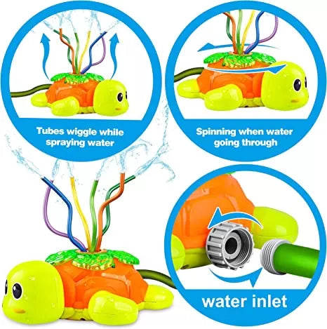 The WATER SPRAY TURTLE for Kids Turtle Spray Sprinkler with Wiggle Tubes is the perfect addition to your child’s summer fun activities! This adorable turtle-shaped sprinkler is designed with colorful wiggling tubes that create a fun and exciting water spray effect, delighting children of all ages.With a sturdy and stable base, this sprinkler is easy to set up and is perfect for outdoor yard play. Simply connect it to a standard garden hose and watch as the water squirts out of the wiggling tubes, creating a fun and refreshing spray that will keep your kids cool and entertained for hours.Made of high-quality, non-toxic, and eco-friendly materials, the JOYIN Water Sprinkler for Kids Turtle Spray Sprinkler with Wiggle Tubes is safe and durable, ensuring hours of fun and playtime for your little ones.This sprinkler is perfect for backyard play, pool parties, and other outdoor activities. It’s easy to use and a great way to keep kids cool and entertained during hot summer days. So why wait? Get your JOYIN Water Sprinkler for Kids Turtle Spray Sprinkler with Wiggle Tubes today and enjoy hours of fun in the sun with your little ones!